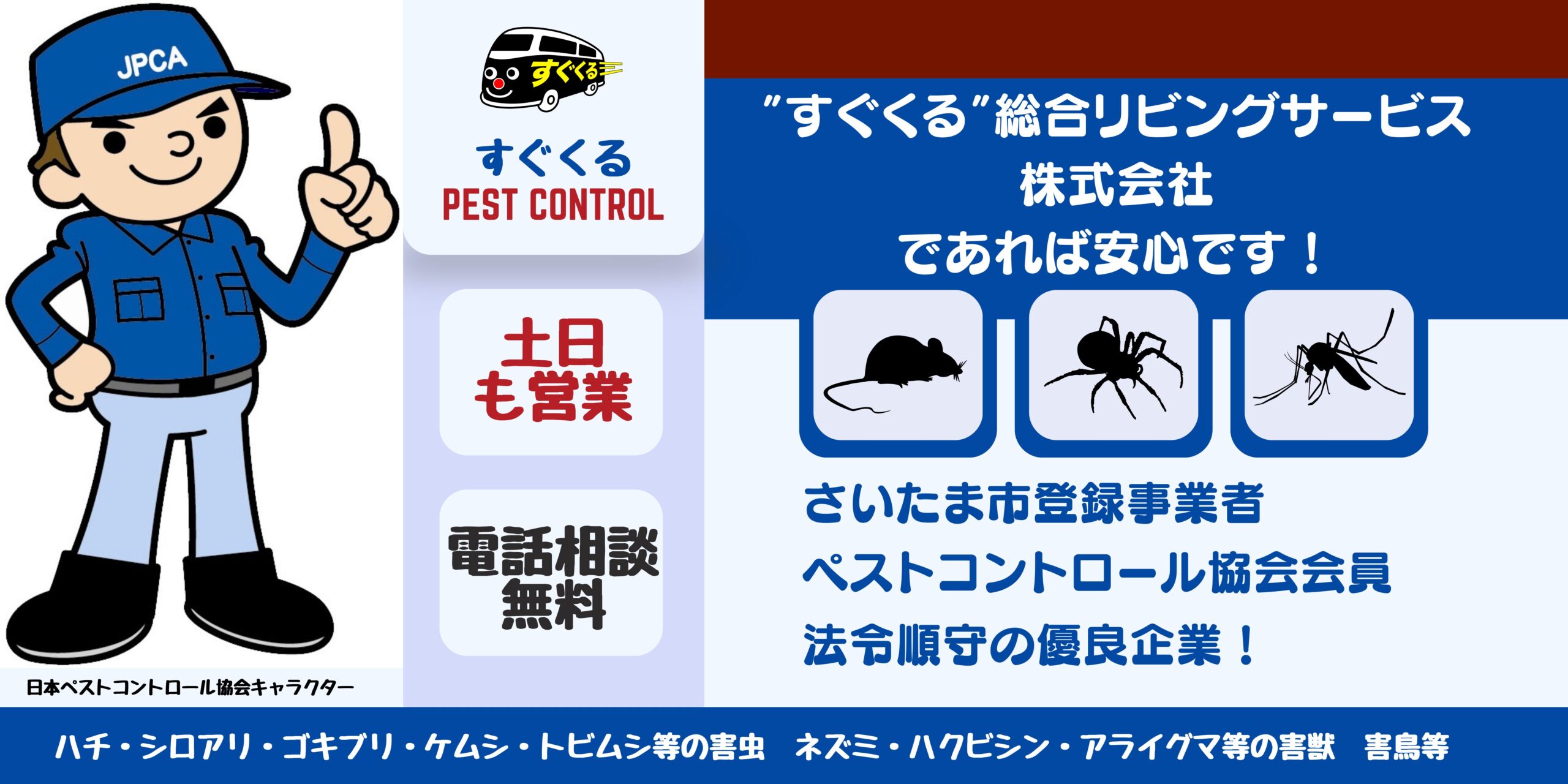 埼玉エリアの害獣・害虫駆除なら、”すぐくる”